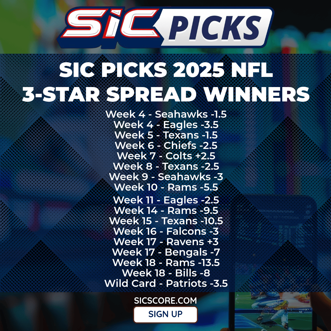 • SIC Picks NFL 3-star spreads are winning at 19-6 (76%)